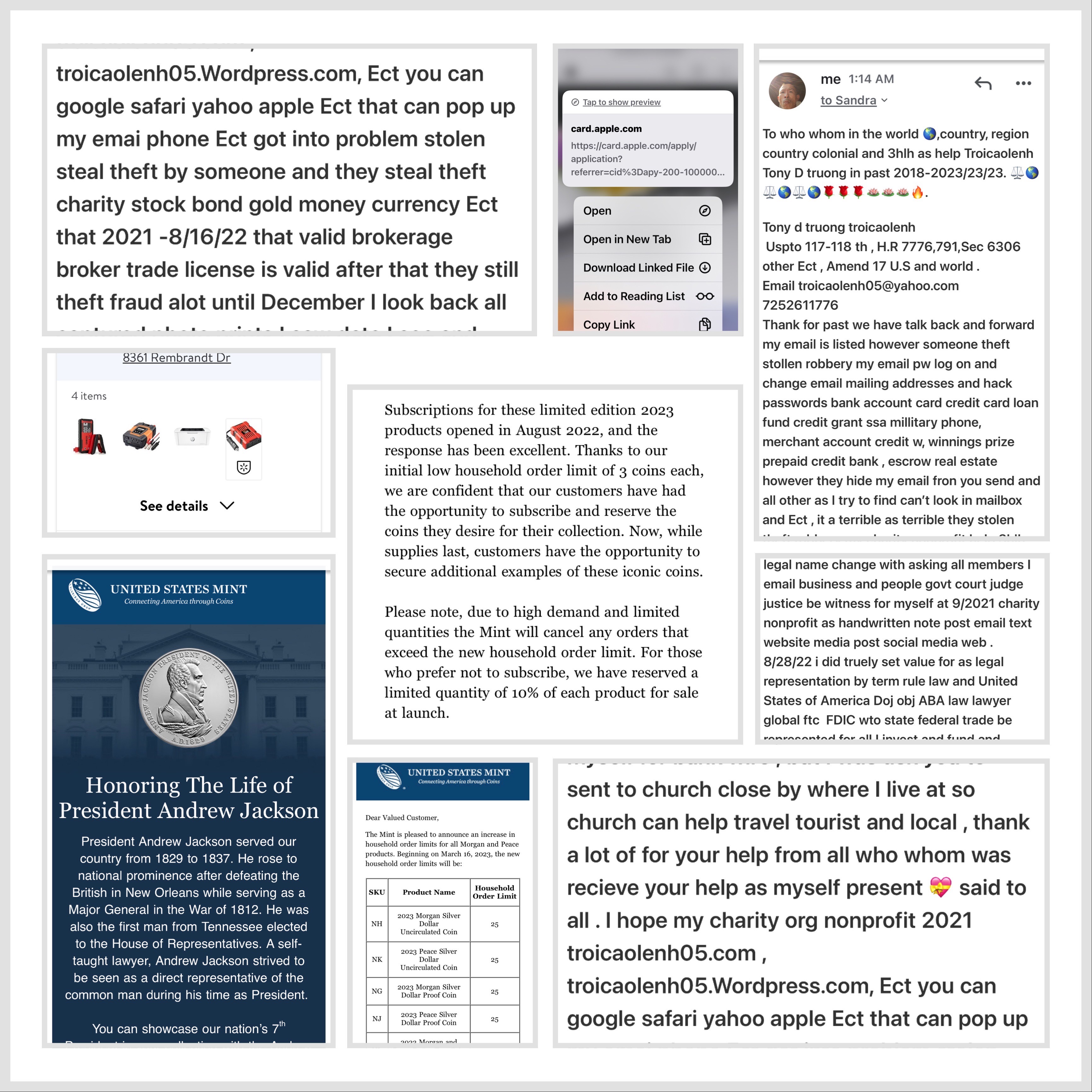 However if theft information charity nonprofit organization by my self or identification personal so I ask assistance with all partners company apple in region country and colonial government and bbb business global as help report or share to all how why what is myself my decision my legal as human rights to ask to said speak Ect email text websites, new media post web address posts tv or other social networks Ect it legal by myself just ask truely to where who whom Ect yes/no it up to the one or whoever whoever whatever myself asking after time they review request does not force harm dare or use anything to make it to be have to be my way , troicaolenh tony d truong not going to do it help is help from itself or Ect decision same at work together, after work thank you way your life of where you at enjoy no bother or related issues that how of life if living as going no matter what where you at to myself , do not name yourself as someone unreal fake or create drama fiction story or note book or pad name yourself something kinda in the dream once you awake at thinking or sleep or smoke Clound without illusion illustration once you blow it out like Clound it can or can’t be through out hand palm as human alive , then simple can decision awake or illusion illustration or it just dreams as thinking does not or does it as happen to yourself or myself as said it truely at never regret by itself or myself truly only at a human alive life of living without trap setup to other as group or who whom follow by thinking same as happen present time itself located at fault by who whom or myself was mean to it only , so you not why you have scare avoid or Ect to all at who whom is wrong or rights, since myself acknowledge of education Ect very low and street gangter language slang bad words speak it that I mean to you or who whom at fault at fake no see no saw only hear voice speak or only true truth as I seen saw it happen as happen to myself only that how myself MyLife of living life is being or you he/she other were set up trap to myself my partner my work my power of trust at back up in the country colonial all 3hlh world 🌎 that only back up as happen true story itself, you or I only 01 is one , it is true i believe trust that no co-signed no sponsor to any one ( in this livings of life there vn poem or quote I read 4 thing never do I add 2 more no co-signed no sponsor in total 6 you want to know the 4 is ask vn who whom or the one at fault they know well ) that all it over myself story to. Note : who whom group Ect at fault fraud fraudulent, have I myself and all 3hlh country all world as help one in past, what do they want to be to have to gather does it happen to ? , what do they have or not since I mean demo it game a toy program is study for school or kid to play at learn with meaning is ???? Good or bad to all , I don’t know forget forgot what I mean to it since myself just rewrite to remember what happen to myself in the life of living still on going same as all other around the 🌎🌕🌑🌍⚖️🌹❤️🌹🌓🔥💭🎵✅world the earth as clockwise normal as use to AD, BC , presents time and future on going have to be no one can change it or stop the movement of the o 0 zero ⚖️🌎🌕🌑🌓🎵⚖️🌃🎇🪐🌹❤️🌹⚖️⚖️⚖️🔥🔥as big as like whatever myself or Itself as draw as example to determine for something someone easily to catch sentence speak or write as to other as hear listen other words it mean to , avoid or do not avoid mistakes misunderstood or fraudulent fraud by who whom itself or myself to yourself only at time happen meaning only .